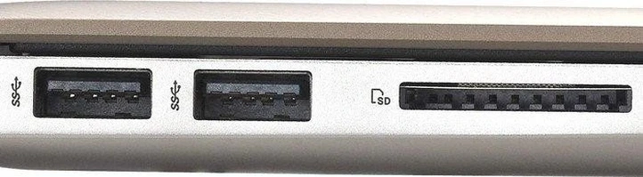 - 3x USB-A 3.0 (5Gb/s), 1x Mini DisplayPort, 1x HDMI, 1x SD Card, 1x MMC