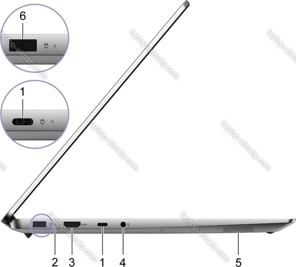 - 1x USB-C 3.1 (10Gb/s), 1x USB-C 2.0 (480Mb/s, сетевой разъём питания PD-In), 1x USB-A 3.0 (5Gb/s, с поддержкой зарядки устройств), 1x USB-A 3.0 (5Gb/s), 1x HDMI 2.0, 1x 3.5 мм аудио-разъём, 1x SD Card, 1x MMC